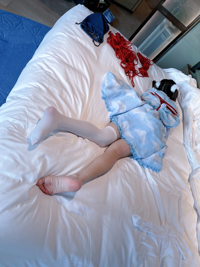 服装改为Lolita,脚趾依然紧紧绑起来并且脚心朝天骑在胯下,用两只手疯狂的折磨茶茶的嫩脚心。可怜的小脚丫被绑着不说,还被压在胯下动弹不得,只能绝望的在胯下扭动挣扎~
