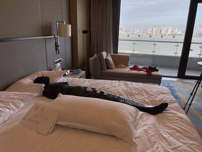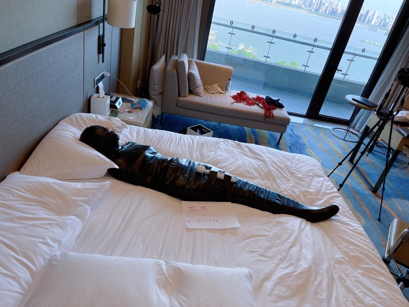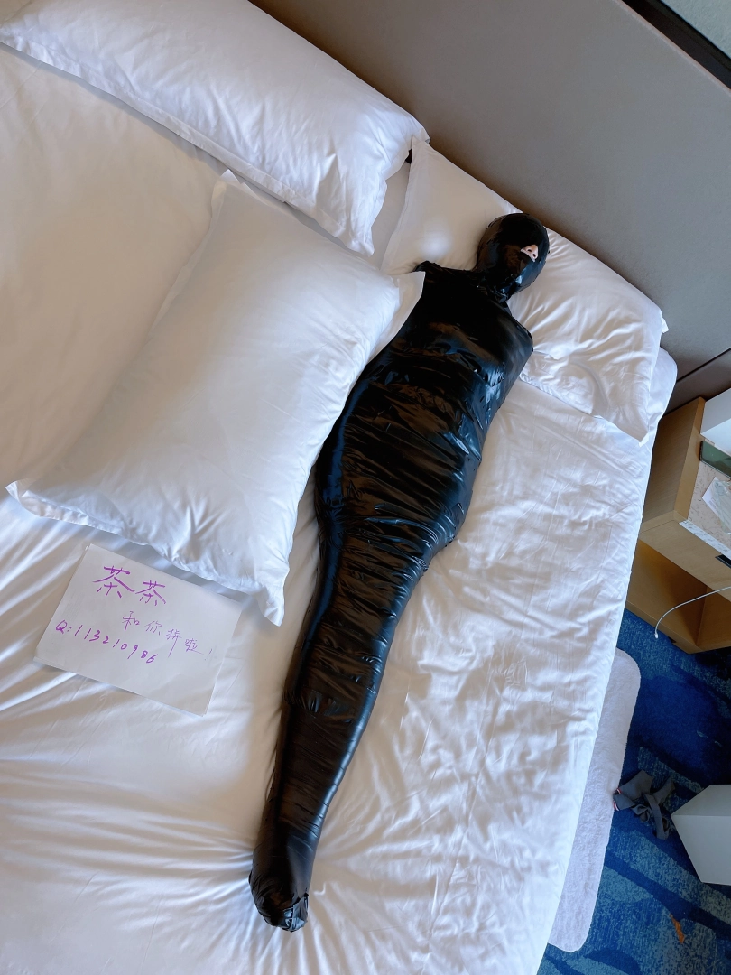 怕茶茶无聊,还给茶茶加上了小话筒,此时的茶茶目不能视,口不能言,耳不能听,身体动弹不得,感官陷入一片黑暗,只能在黑暗中静静感受紧贴皮肤的绝对拘束感。