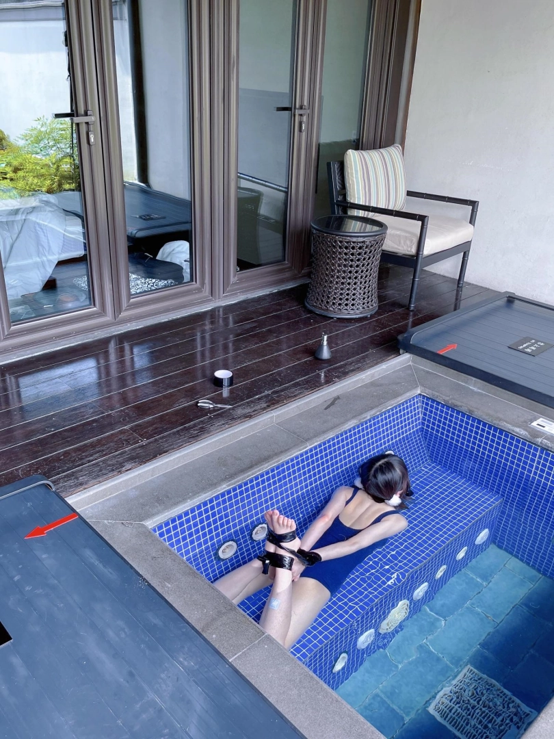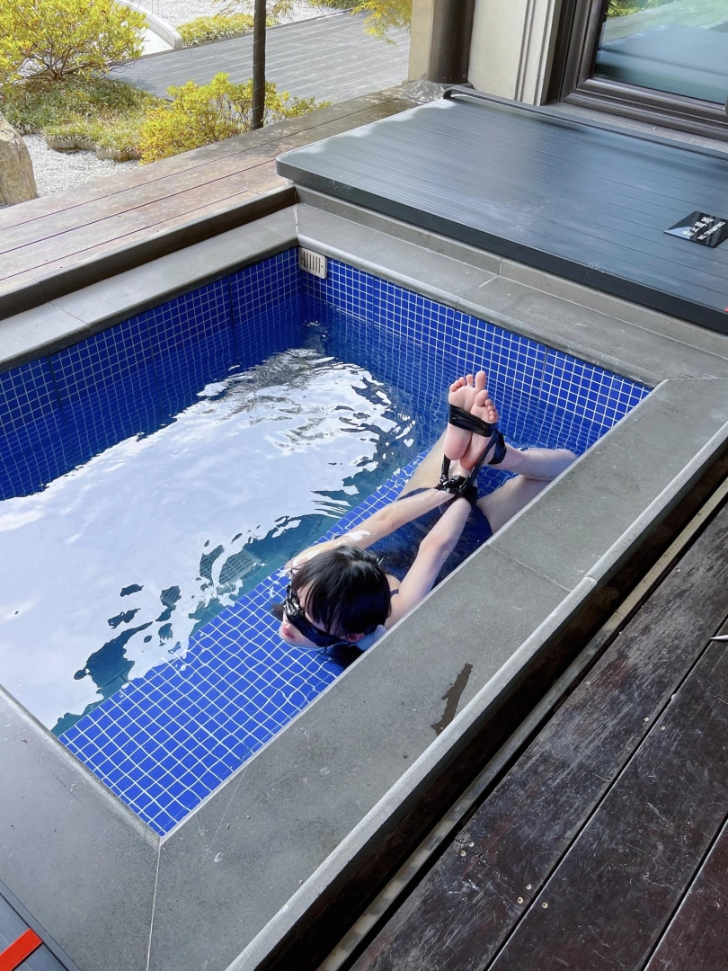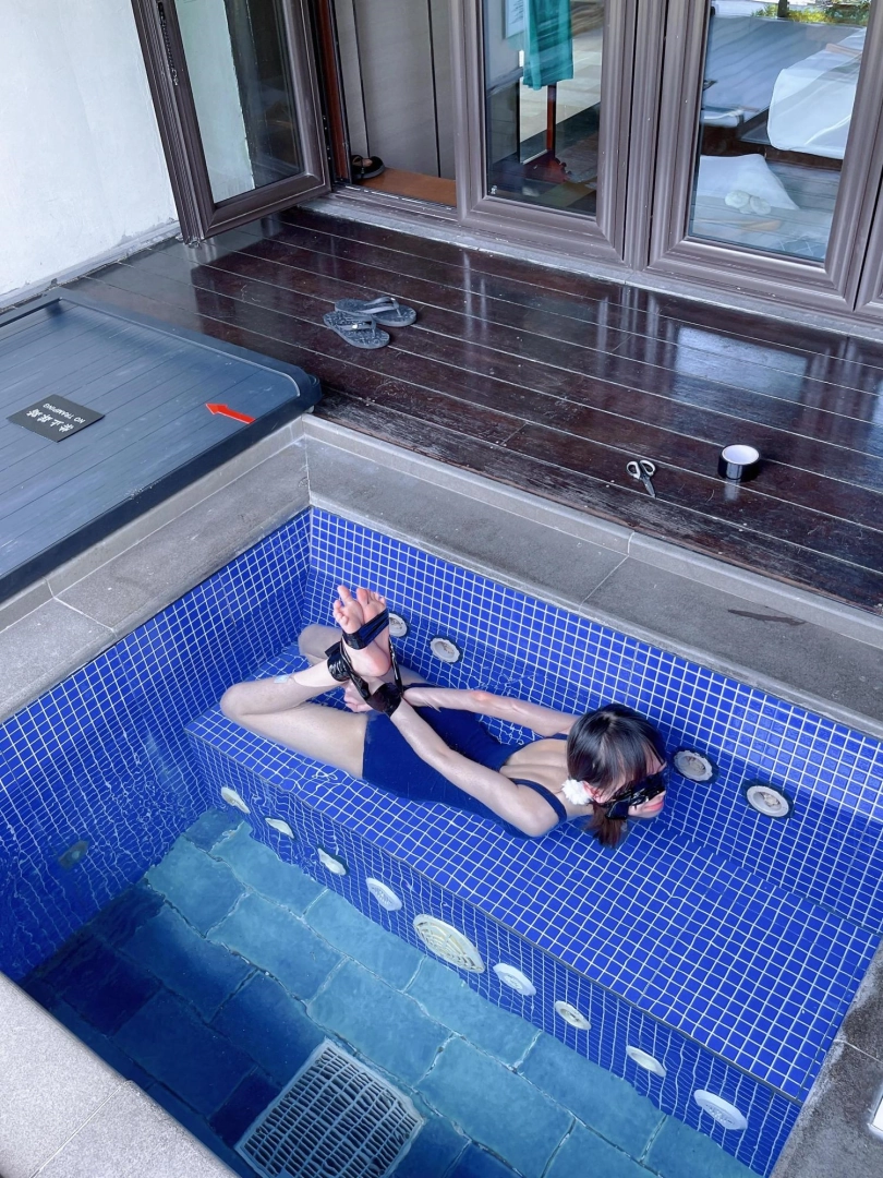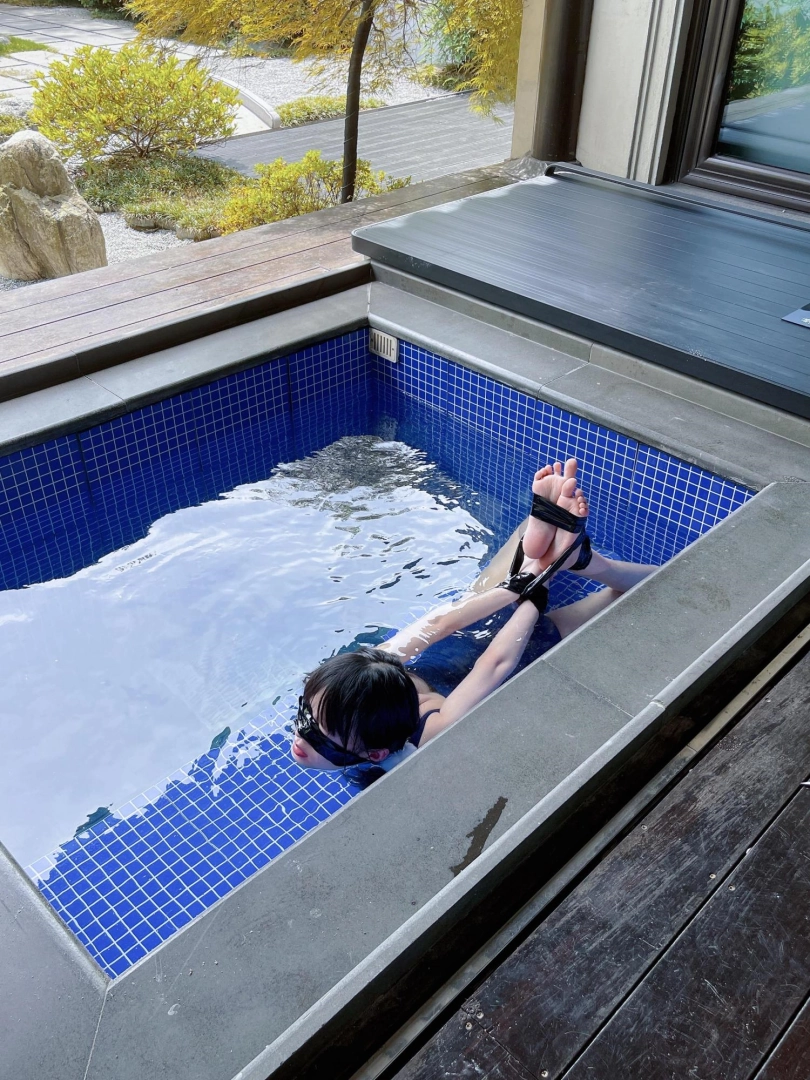 这次把茶茶用胶带绑成了驷马丢进温泉泡池里,然后盖上盖子,泡池就成了天然的水牢~