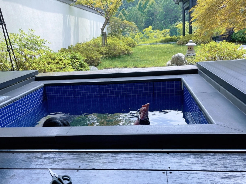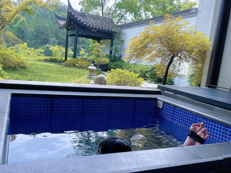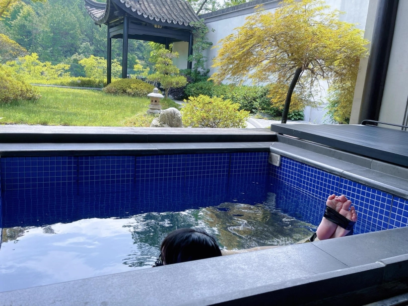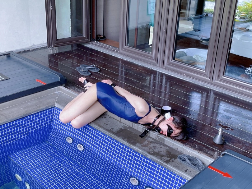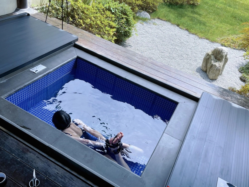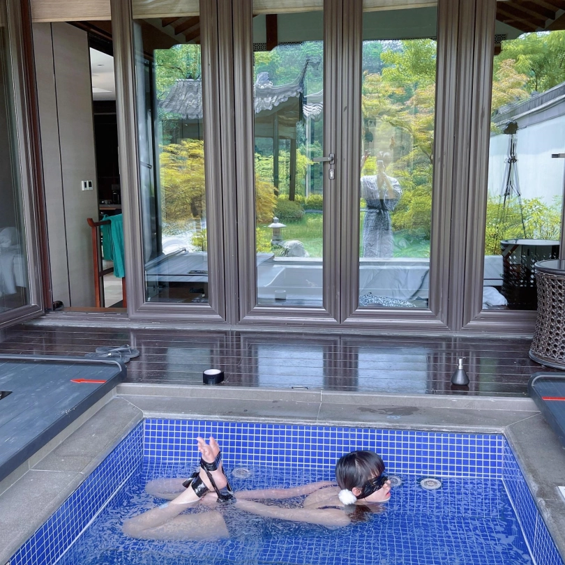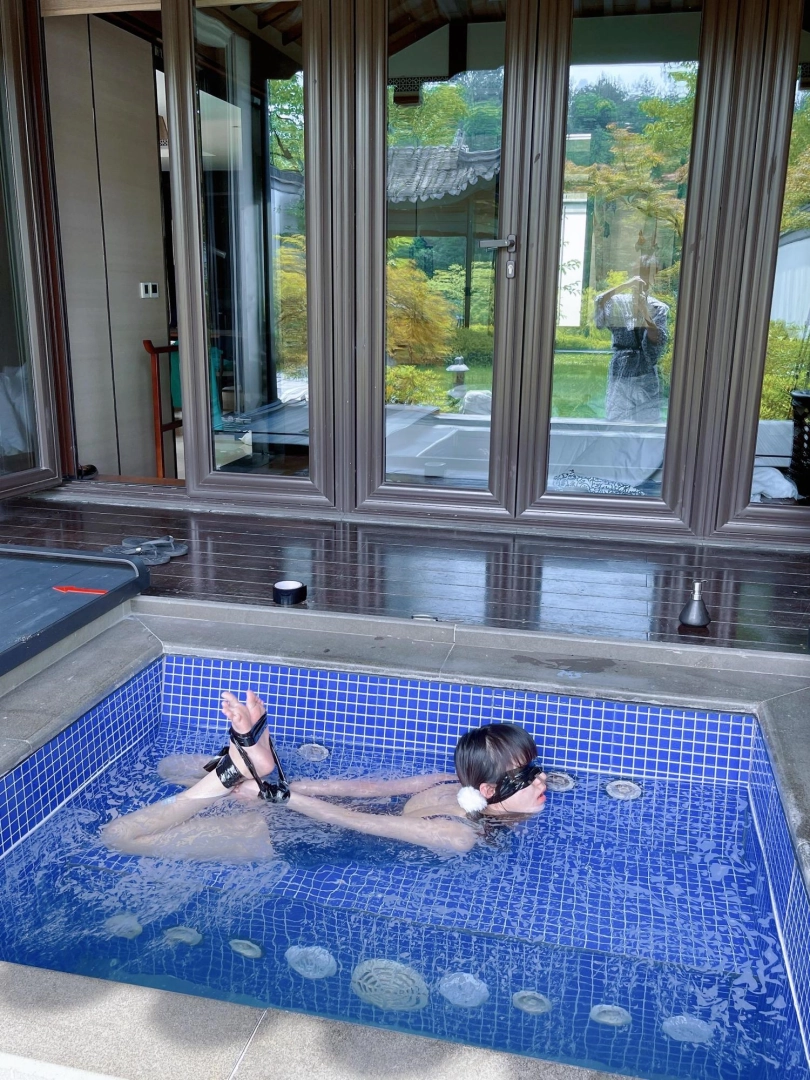 这次把茶茶用胶带绑成了驷马丢进温泉泡池里,然后盖上盖子,泡池就成了天然的水牢~