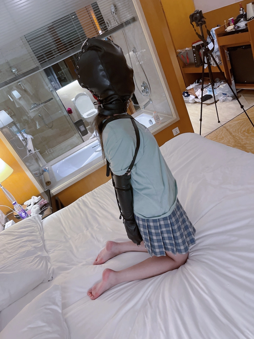 这次给茶茶戴上了绝望的感官剥夺头套,里面加上了耳塞~真正的目不能视、口不能言、耳不能听...然后戴上单手套用绳子绑个驷马,茶茶肉乎乎的可爱的娇嫩小脚丫就这样摆在你面前,任君把玩~