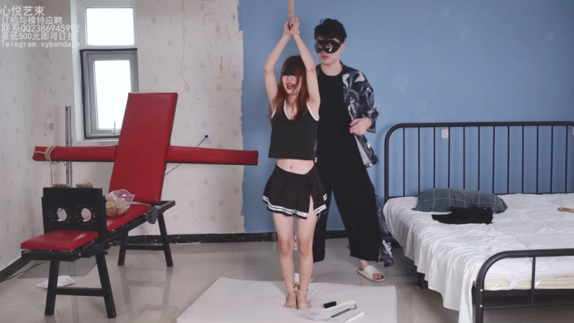 文文还是最怕痒的那一个呀,挠的都要蹦起来了哈哈。这个短裤背心加上合适的绑法,刚好暴露出文文全身上下所有的敏感部位,TK爱好者不容错过呀。