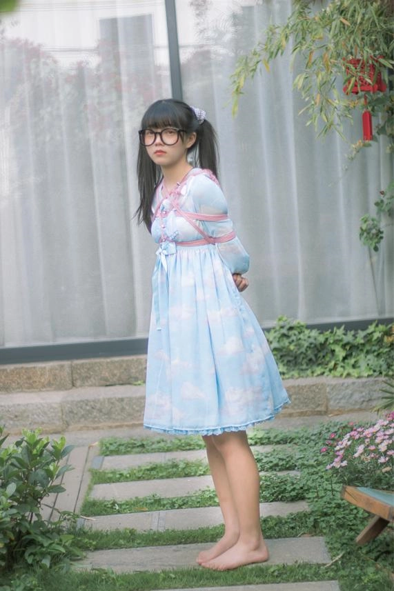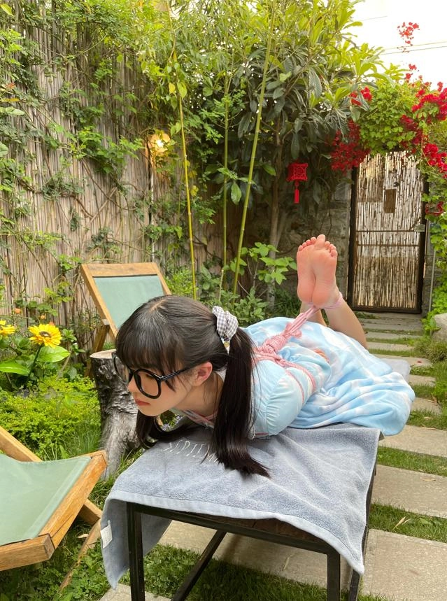 内容很简单,捆绑+户外放置(其实是花园小院啦),清脆的鸟鸣声,微微吹过的风,和如艺术品般被驷马放置的少女。在这种条件下心情都会变好。更何况少女被挠脚心银铃般的笑声也让人心旷神怡~当然,除了毛笔和手指等tk道具,我还用了电击拍。但是因为茶茶拍摄时不舒服,身体状态不好,所以只是浅尝辄止,并未用高档位电击。
