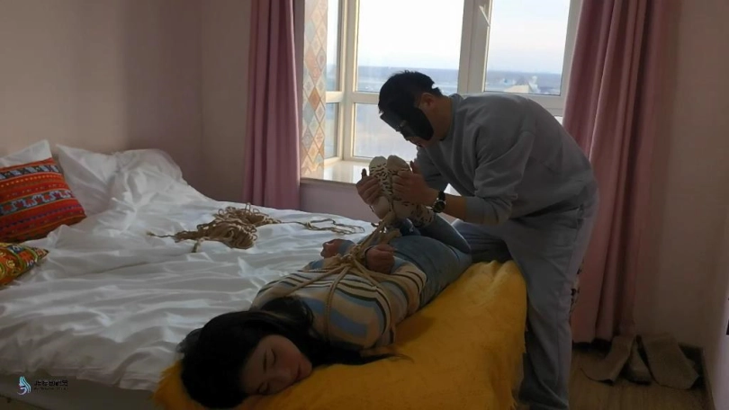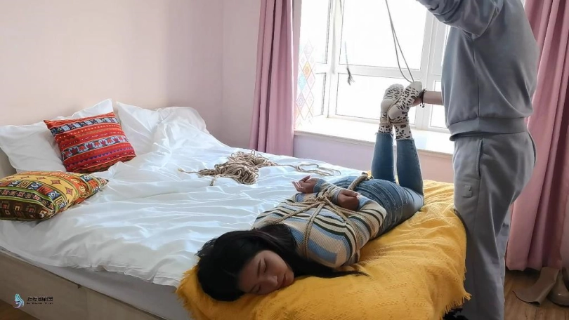 【JS】【玖念】日式驷马捆绑股绳豹纹棉袜TK挠痒人肉抱枕