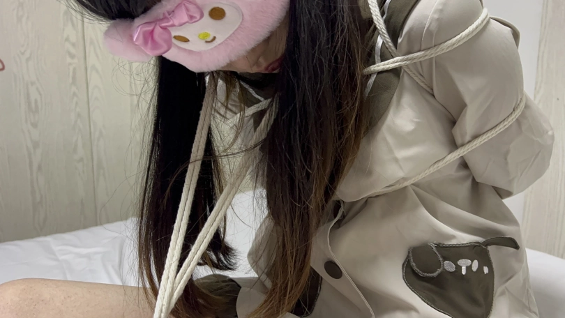 三位少女乐意接受绞刑处理,但毕竟年级还小还些不安,于是带上眼罩接受捆绑。