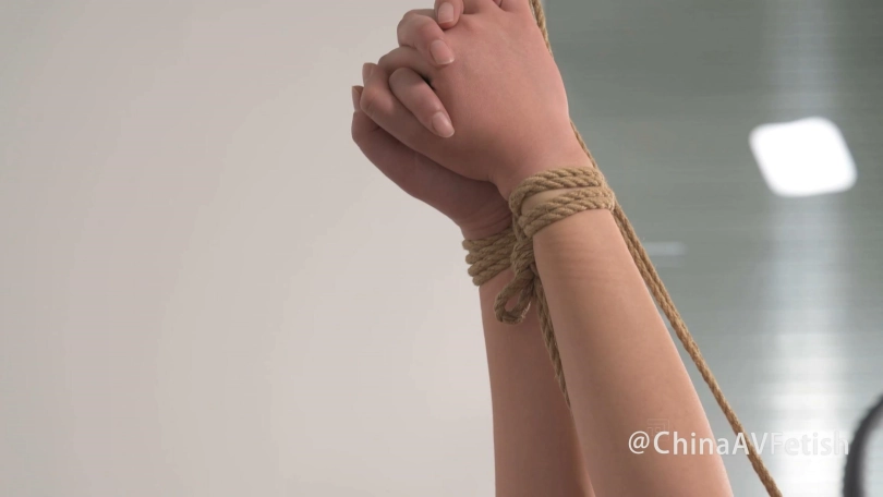 固定头部的皮带戴上有点大,但是小戴很痛快的要求戴上,这次捆的也非常难受的姿势,虽然是新人,但还是挺有敬业精神,给她点个赞!