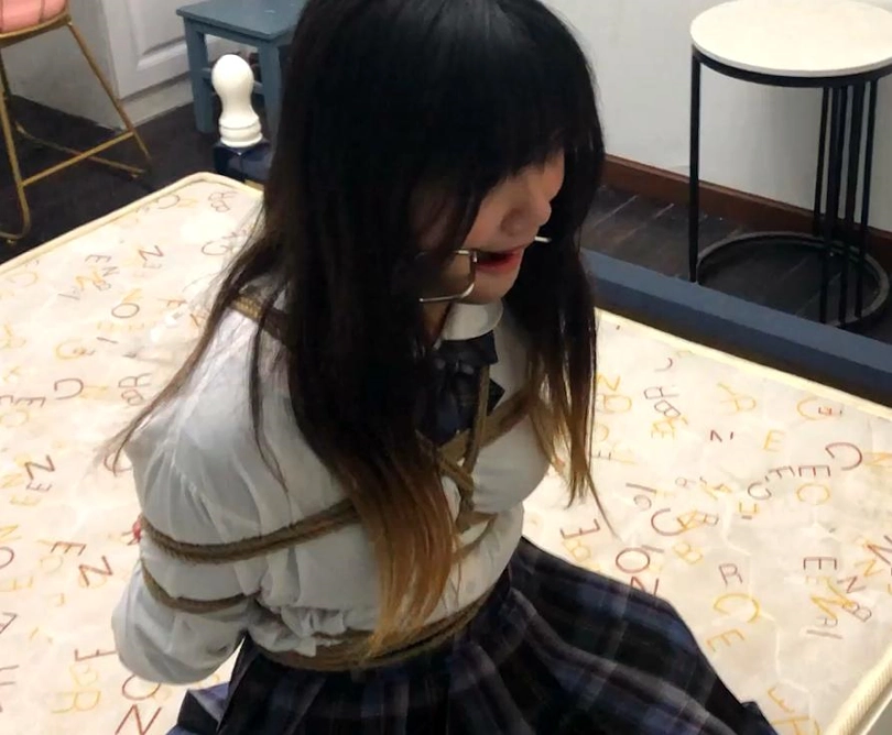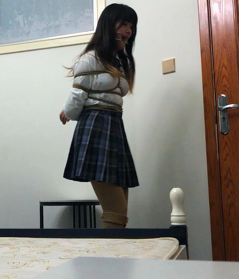 COS圈的小姐姐第一次来体验绳艺,绑好之后再给她带上口环,然后让她自己呆在房间尝试解绑,小姐姐还自己偷偷的看自己被绑的样子,不知道小姐姐看到自己被绑着带口环是什么感受。