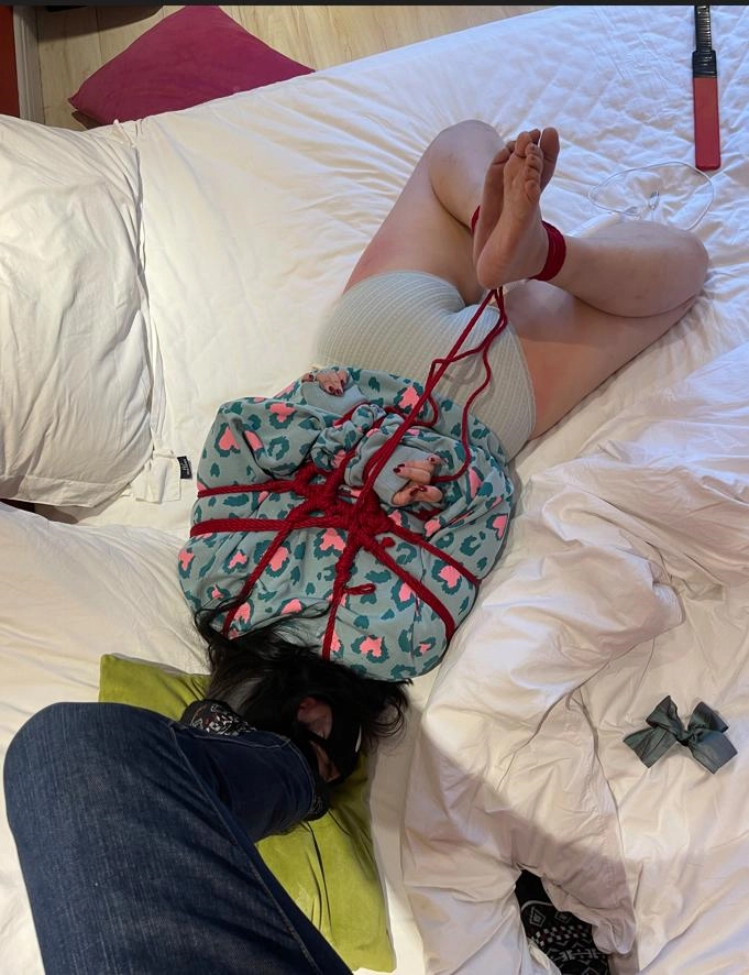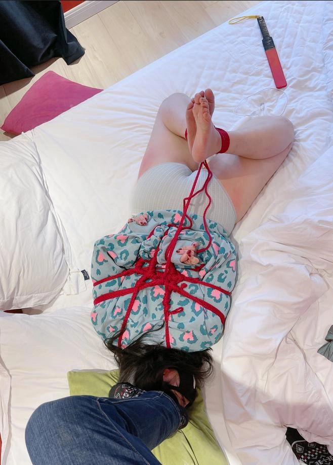 把妹子驷马绑好,不同的是这次把头发扎起来和脚腕绑在一起。学妹可怜的小脑瓜被迫向上抬起,只要稍微动一动就会拉扯到头发和脚腕~
