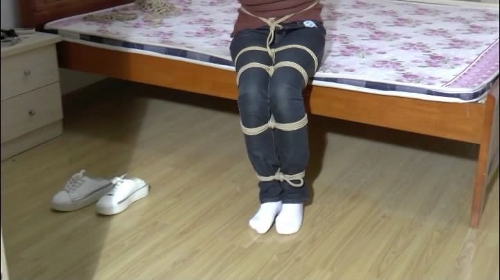 老黑脱掉玟莉的鞋子,露出白色短棉袜,用绳子把玟莉紧紧捆绑起来(绑法:上身日式,下身脚踝,小腿,大腿,膝盖处都绑上,还要把屁股那也绑上(忘了怎么形容了,不过我猜你会懂得),丝袜嘟嘴(丝袜不要在嘴巴外面流出太多,影响美观),蒙眼),老黑离开,玟莉拼命挣扎
