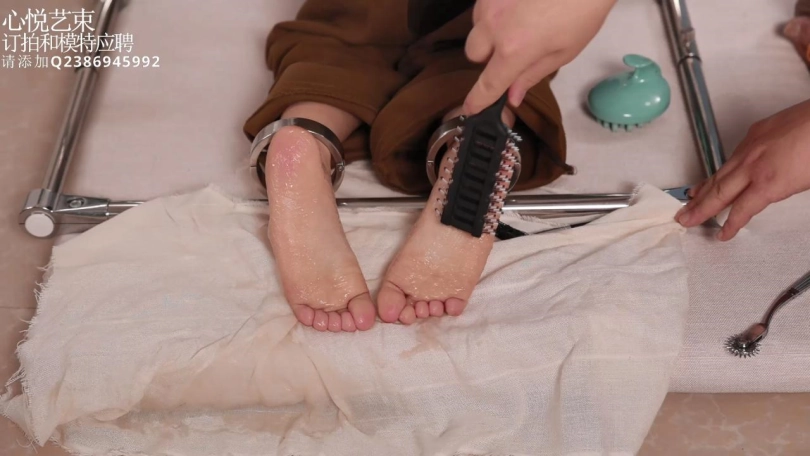 呀,这个就是一个足控向的作品了,35的小脚丫,超级娇小玲珑,被K9架禁锢住,一点办法没有,再倒上超多的润滑油,突出的就是一个“润”。挠起来会拉丝的润。让我们把黏黏的液体尽情的涂抹在这双娇小的玉足上面吧。
