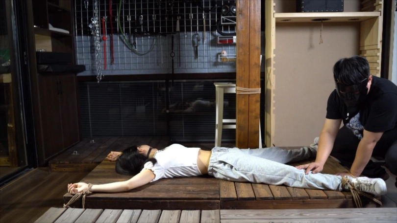 大字缚绑在地板上被tk,这时候嗷嗷应邀过来敲门