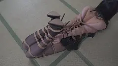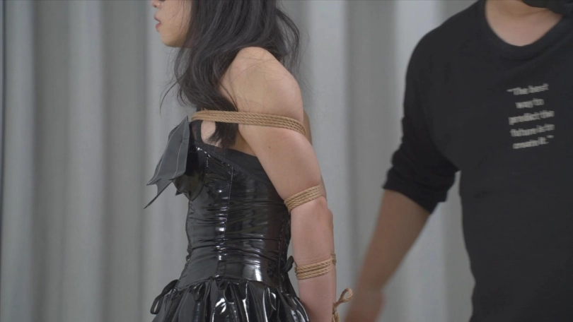 【象人】紧密蛇缚!小0-黑色小恶魔套装,全身紧密直臂蛇缚,并腿+驷马