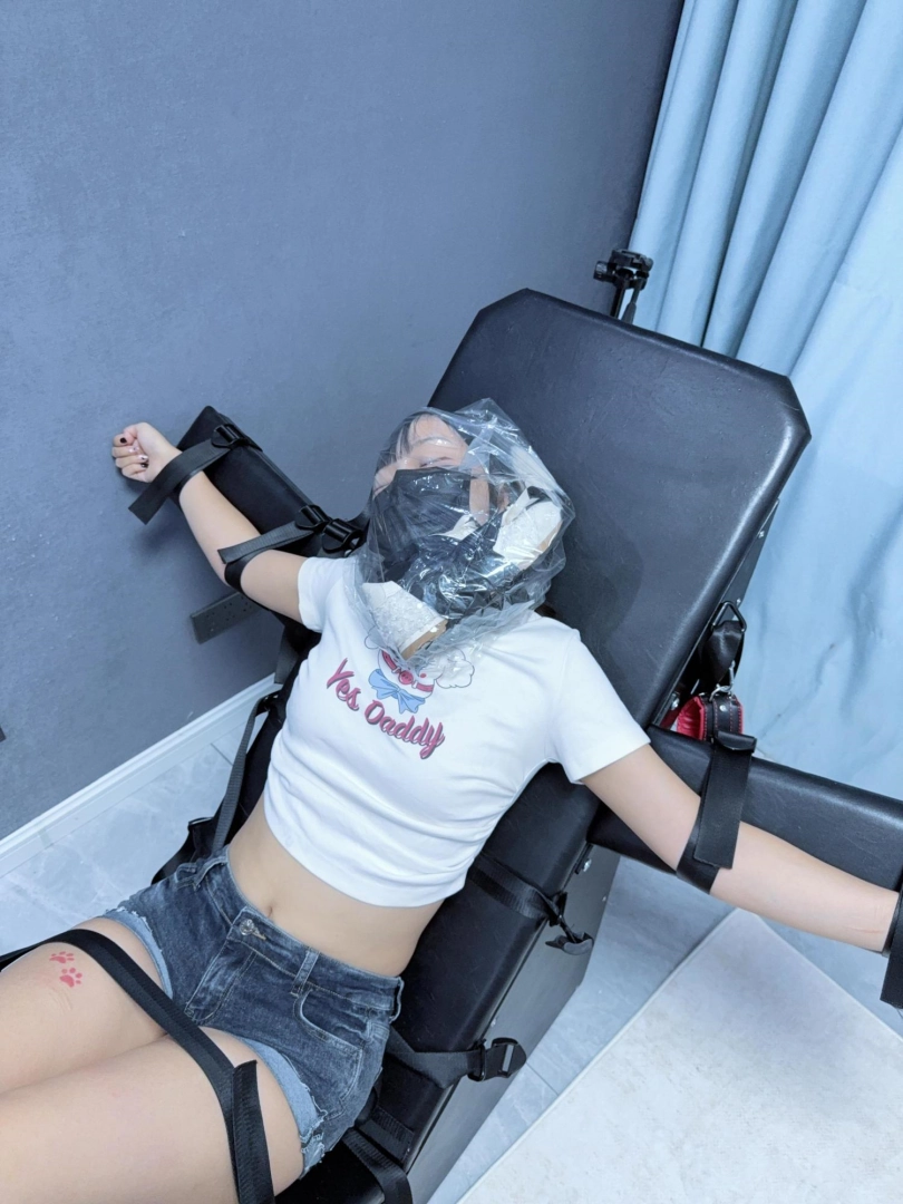 把妹子拘束在足枷重刑床上,鞋子摆放在足枷附近,进行简单的挠痒,并且用小红抽打脚底和大腿。在咨询妹子可否打一下肚子并获得同意后用拳头打了几下小腹。后面突发奇想,用胶带把鞋子扣在妹子口鼻处固定好,一段时间气味责后,拿出热缩袋,套在妹子扣着鞋的脸上进行呼控窒息。同时重复抚摸、鞭打、tk。值得一提的是后续剪辑视频中发现妹子在呼吸限制中居然湿了,一直在夹腿,事后和我说意识有点模糊但是很舒服....