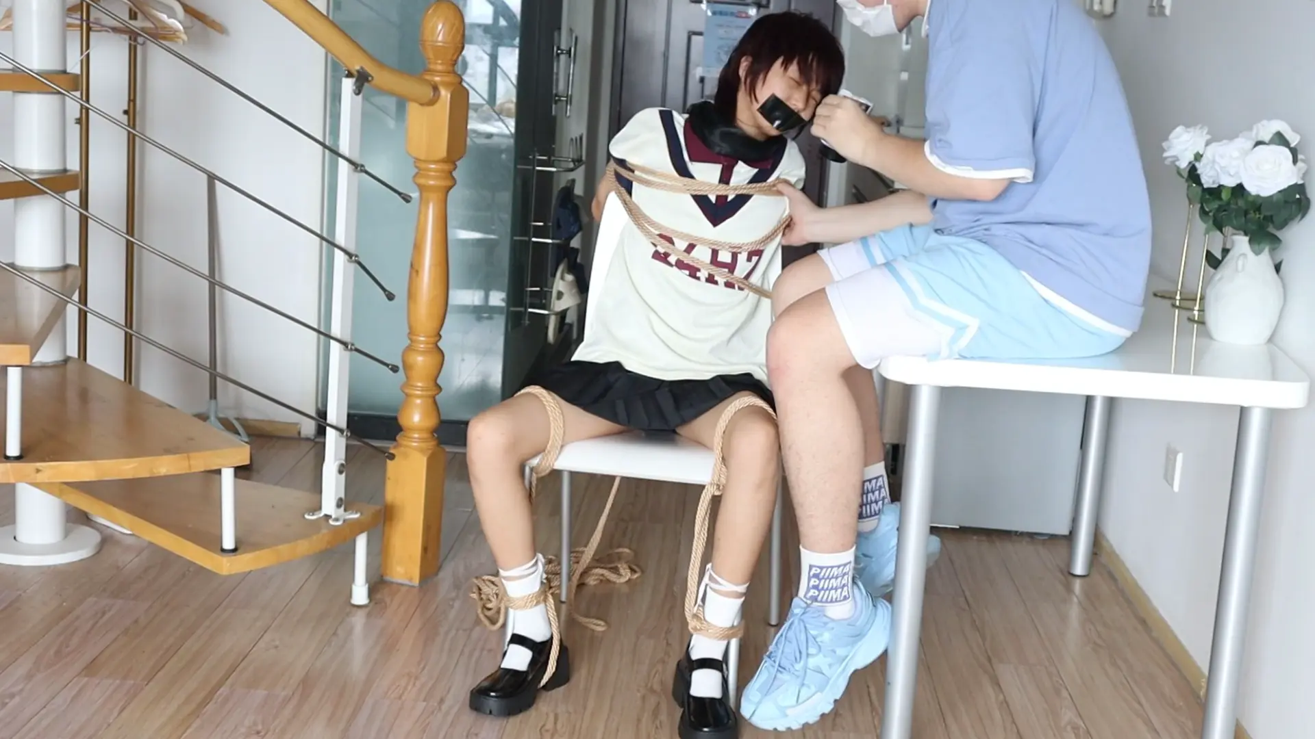 眼镜才是本体!!【荷仙少女】眼镜才是小B的本体,露脸萝莉椅子缚和M绑,羞辱挠遍全身的部位,一开始脸呆呆的害羞不敢挣扎的叫喊,直到安抚后才开始发挥本性呜咽,短发萝莉萌萌的眼睛因为tk敏感直接扭曲成一条缝