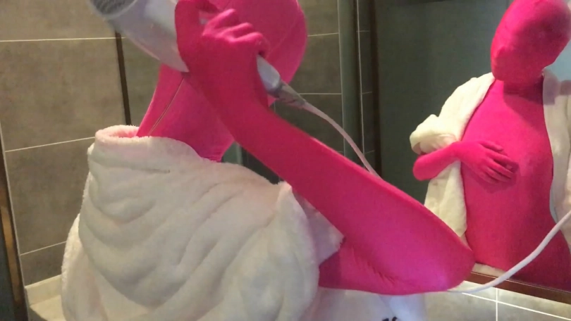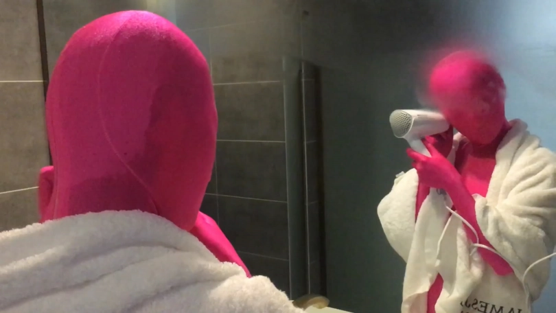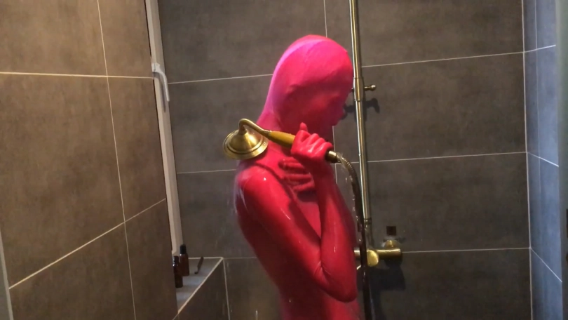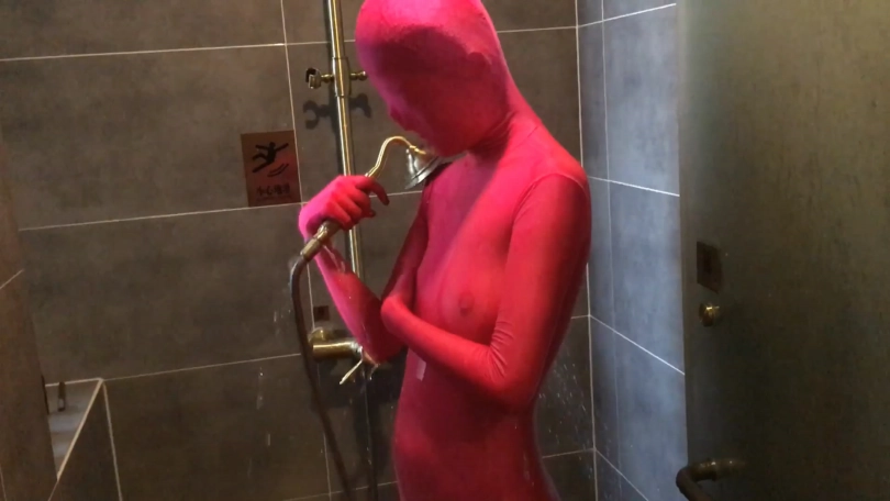 最后双层全包在淋浴间冲凉 过程中水滴渗透在头套里让fiona苦不堪言!