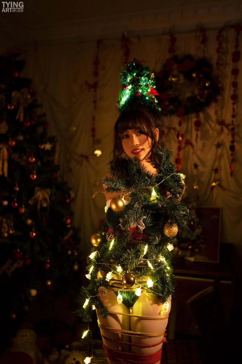 模特Mmi,全身紧缚,加上道具修饰,成为一颗闪闪发光的圣诞树。
