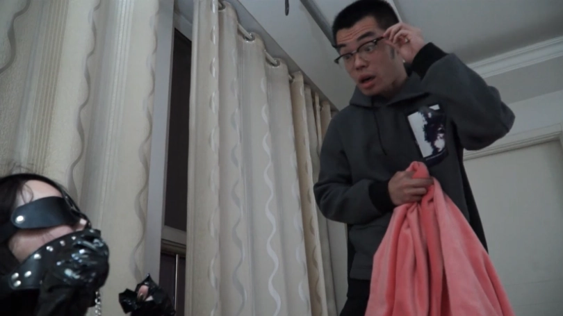 热爱绳艺的他,怎能放过这次好机会。小王心想:”不管她来自哪里,先放在家里吧。为了防止她趁我不在,逃跑或者叫喊,把口塞和眼罩戴回去。”