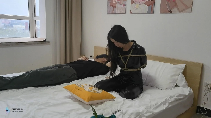 【JS】【宫怡】黑胶衣后手观音捆绑放置