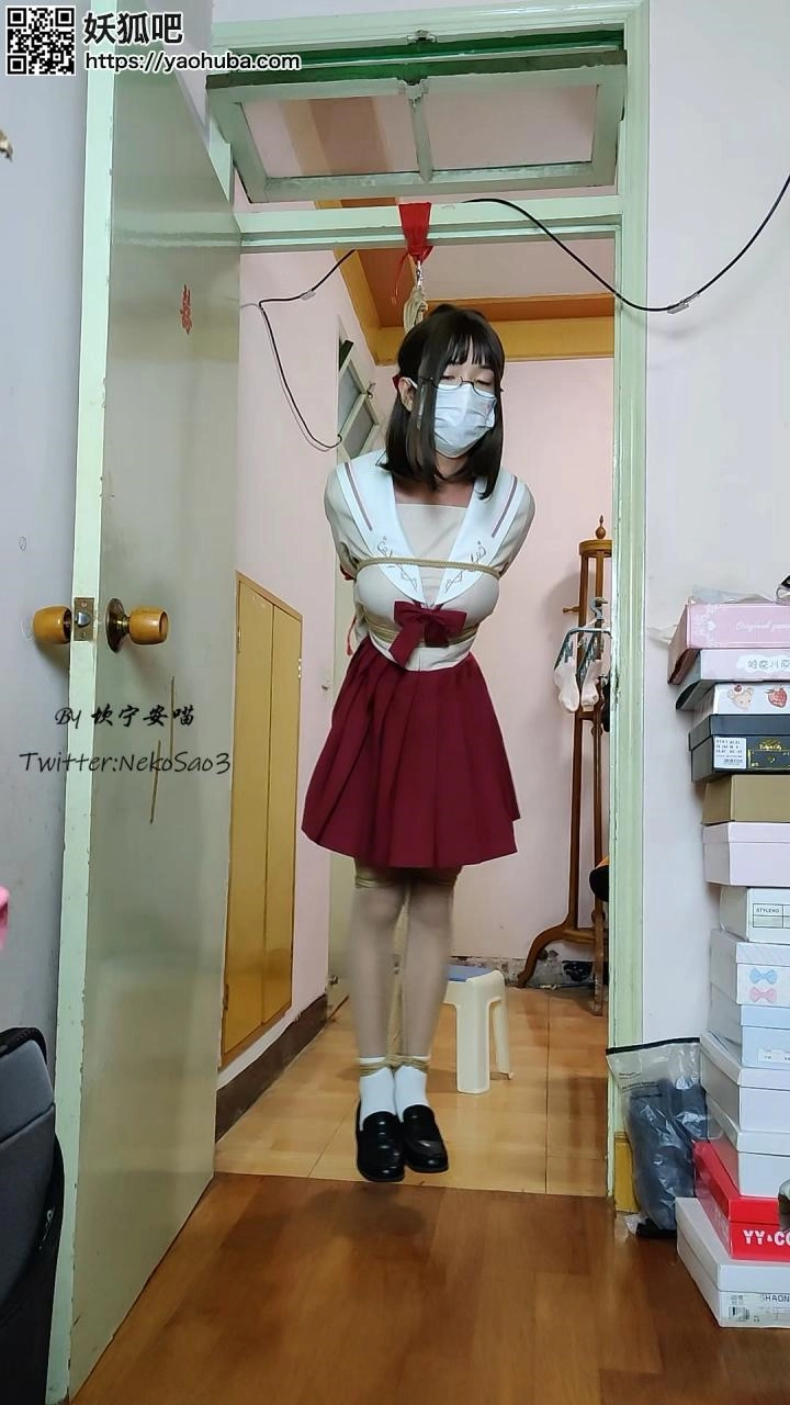 这次绑了完全并腿,然后用单独的绳套固定手肘达到直臂的效果ww