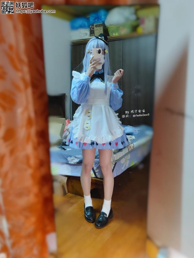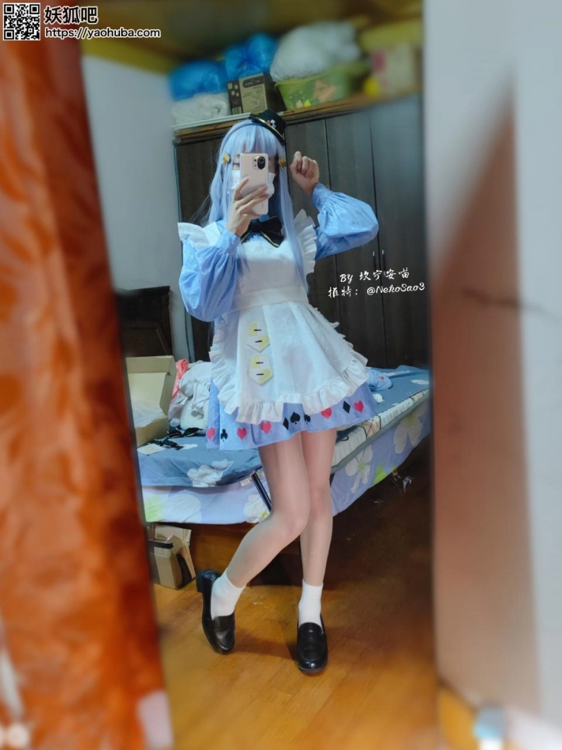 穿的衣服是少女前线HK416的黑猫的赠礼cos,但是因为小伙伴嫌弃长发不想捆所以没戴cos的毛orz,就当普通的蓝白女仆装好了√
