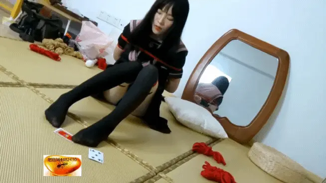 【魅影空间】小美奴洋洋紧缚游戏(JK服爱好者福音):紧缚的美奴洋洋只好用小脚翻牌陪主人玩牌、输了要小脚捶背、棒棒震阴、TK,吊脚……边呻吟边期待。