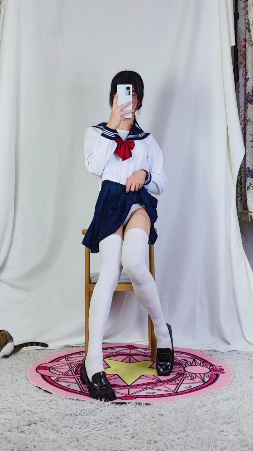 【坎喵】绝望的自缚-白丝过膝水手服JK日式折腿驷马悬吊