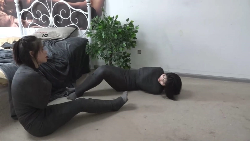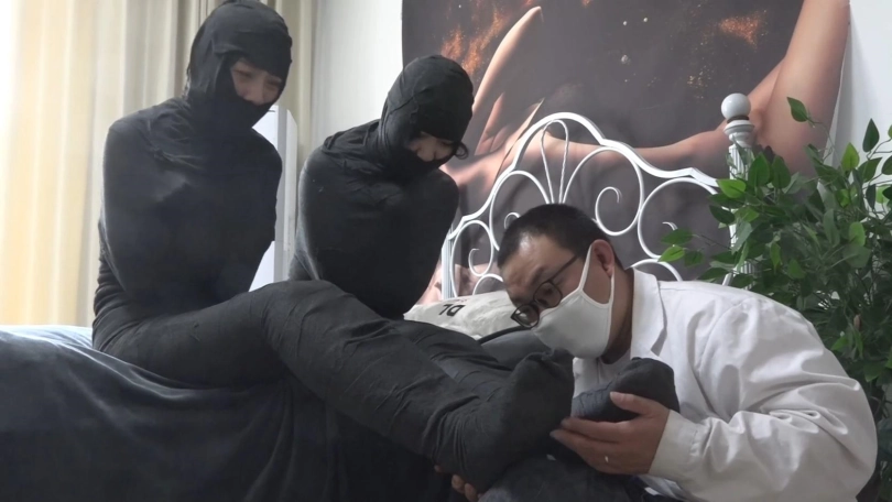 超有演技的吴晗和柳洋给大家带来有趣的身体操控剧情,2位美女患者被强制入院,为了哑咬,强制包裹囚禁说要长期治疗,2个美女醒来发现自己竟然被木乃伊化,只有丝袜脚趾能动,2个美女发现文件,原来全身的绷带如果一小时解不开就会被永久封死。2个美女究竟能不能挣脱这夸张的拘束,或者永久变成人茧当别人的玩物?