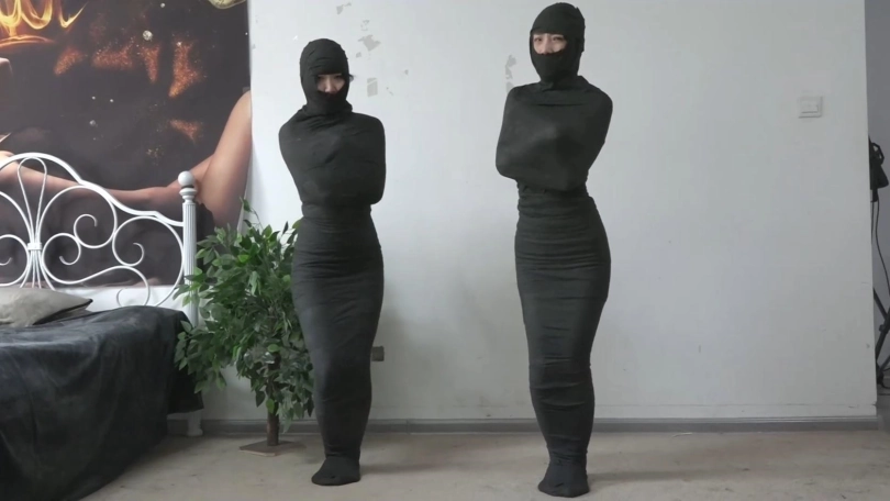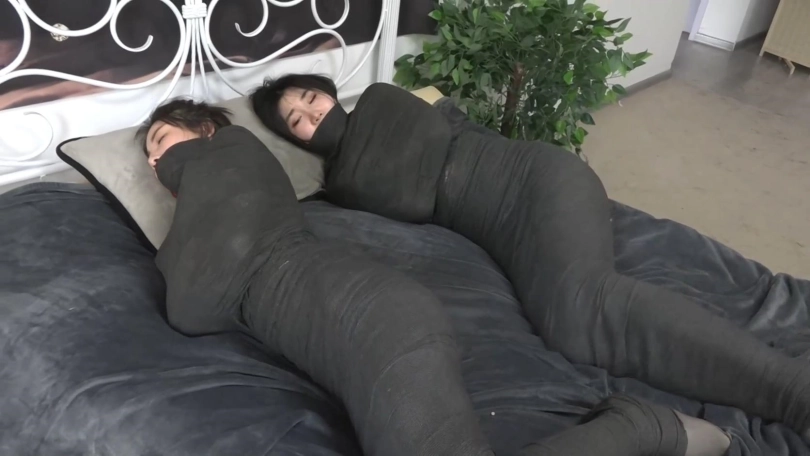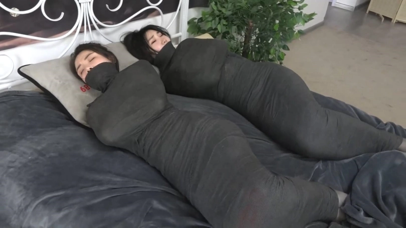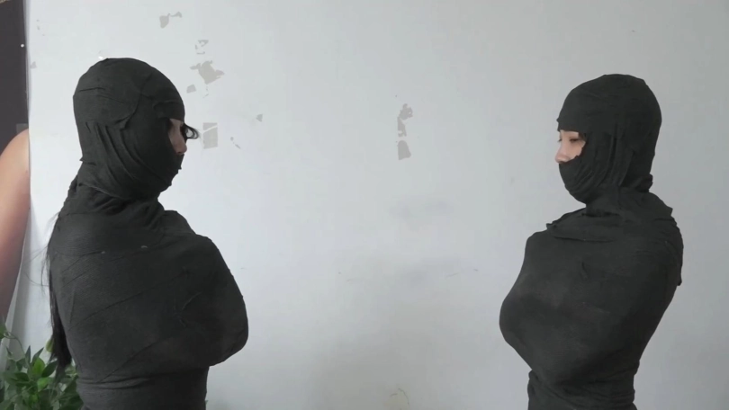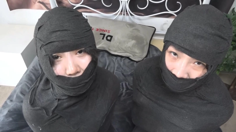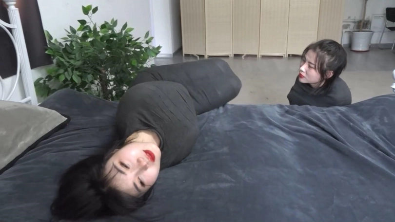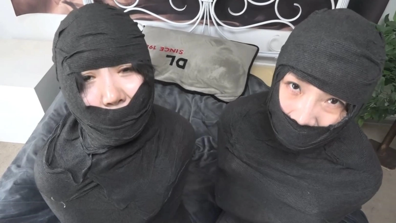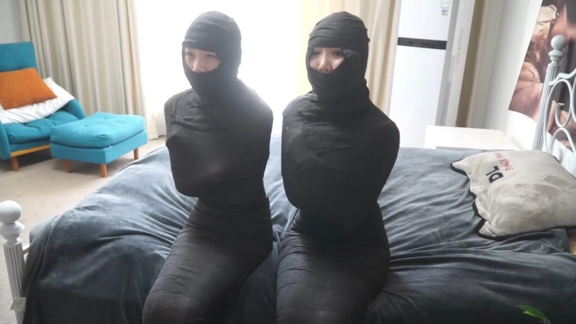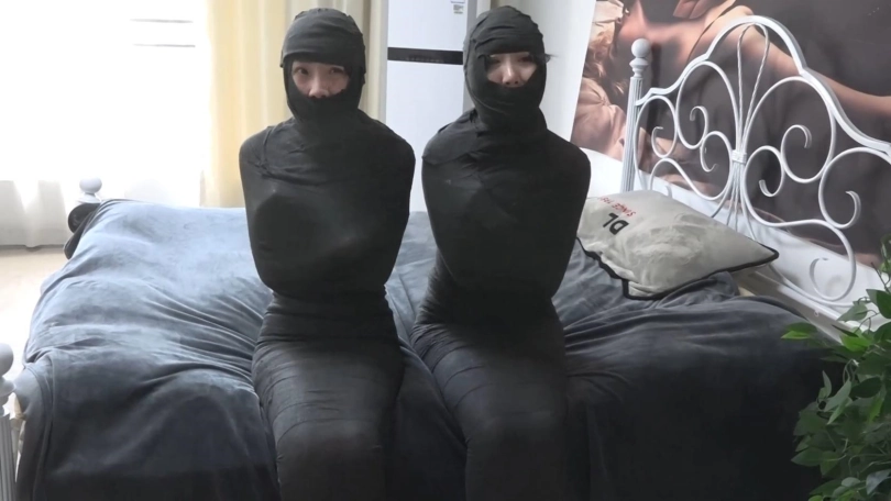 【逍遥】《黑色美人茧——双木乃伊紧缚02》2位美女被层层包裹 变成诱人的黑色人茧