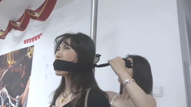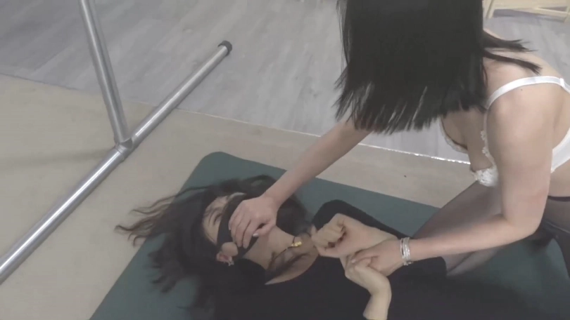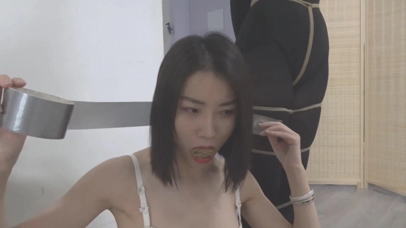 柳洋被蒙面女匪换着花样调教,狗链爬行、跪缚+猿辔,玩够后就把柳洋放了还威胁不要报警,结果柳洋顺势扑倒女匪,让她也尝尝被缚的滋味,觉得不够刺激,还在已经被绑住的女匪旁边自缚,两人一起呜呜呻吟...