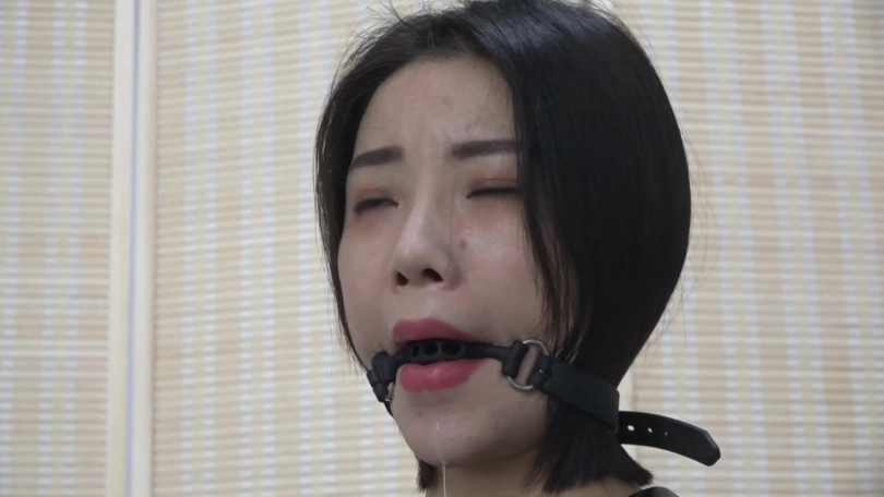 全身皮衣捆绑+高跟鞋被三种口球轮流堵嘴 口水从开始流到结束流个不停