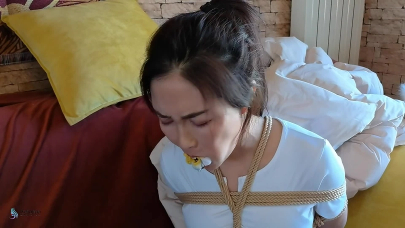 主演嘉莉,美女老师想要提高坏同学成绩,主动提出要去家里给他补课,不曾想,等待她的是一把刀,几根绳子,各种胶带。坏同学又从背后踢她膝盖让她跪下,然后用绳子捆绑她(上半身直臂缚拍下捆绑过程。)捆好上半身后,然后捆绑她双脚(捆脚腕,小腿根,膝盖,大腿根,股绳。)捆绑完手脚后,又用绳子把手脚连起来绑成驷马倒攒蹄。坏同学看着捆得像粽子的老师,得意的摸老师的大腿,屁股再把她身子侧过来,摸肚子和胸。老师说:你这是犯罪快放开我。坏同学说:看来得堵住你的嘴了。然后拿来一块毛巾,揉成团,捏住老师脸颊逼她张开嘴后,塞了进去。然后用橙色胶带缠绕封上。(嘴巴尽量塞满)堵完嘴后,坏同学拍了拍又摸了摸她的屁股后说:我去上个厕所,回来再玩玩你。然后离开,老师在地上使劲挣扎,并扭动着身子往门口爬去。(镜头拍全身挣扎和面部表情)一会,坏同学回来发现想逃跑的老师,决定惩罚她。然后松开她脚上的绳子,脱了她的靴子(拍脱靴子过程),再继续绑上(和上面一样,也是驷马。)然后用力的挠脚心,挠腰,脖子,脸等,全身TK。折磨玩弄一会后,坏同学把老师长发绑起来再和身子连起来让她强制抬头。然后撕开嘴上的胶带,掏出毛巾,然后白袜子堵她的嘴巴,外面用肉色绷带缠绕几圈,再用橙色胶带封上,堵得严严实实的。然后离开,留美女老师在地上挣扎并发出呜呜呜声音(全片多挣扎,多发出呜呜呜声音)