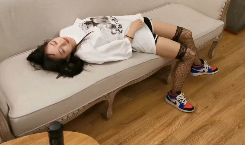 第二幕:把醉倒在门口的妹子拉回家里,放到沙发上。回过神来的小特这才发现,这个妹子长得可真水灵~,精致的小脸蛋上挂着一双大眼睛,虽然是喝醉了酒,脸上一阵红晕,也看得出,妹子的皮肤保养的很好,吹弹可破的样子就知道,这妹子是有钱人家的小妹妹。妹子穿着厚厚的棉衣,家里暖气开的足,她头上已经出现了一些汗珠。罢了~当一回好人吧,就让你在我家睡一觉吧。我回去房间拿了一床被子,然后小心翼翼的脱掉她穿在外面的棉衣。哇…,这一身吊带背心加小短裙,肯定是刚从那个夜店回家,认错了门。然后脱掉她的鞋子,漏出包裹在肉色丝袜和网袜里的可爱的小脚丫。不得不说,这个妹子的身材,确实让人~~会想太多。正当,小特把妹子摆成舒适的姿势,抓起被子往妹子身上盖时…,小特突然想到了一些,可能的事情~~