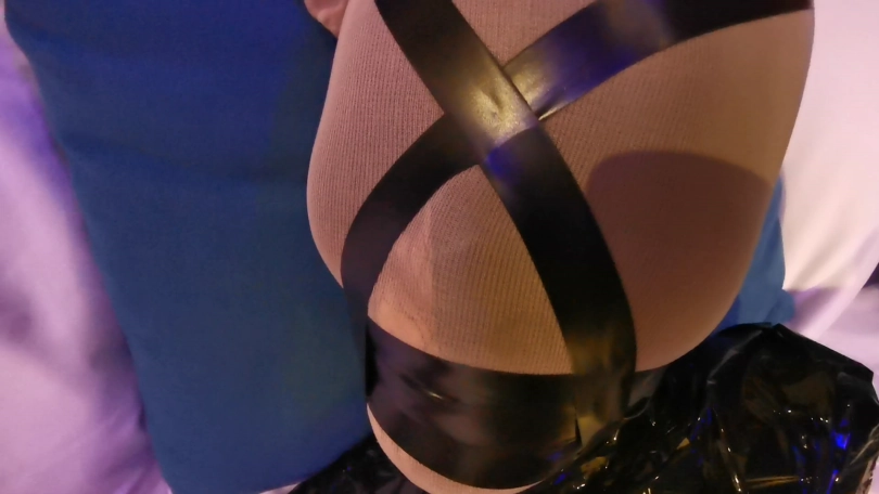 先用丝袜将身体全部包裹起,在用胶带木乃伊捆绑,胶带缠绕封嘴,用振动棒不断刺激,高潮的快感使瑾萱挣扎身体,扭动双脚。但无济于事,只能呜呜的体验振动带来的快感。
