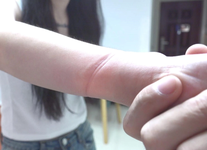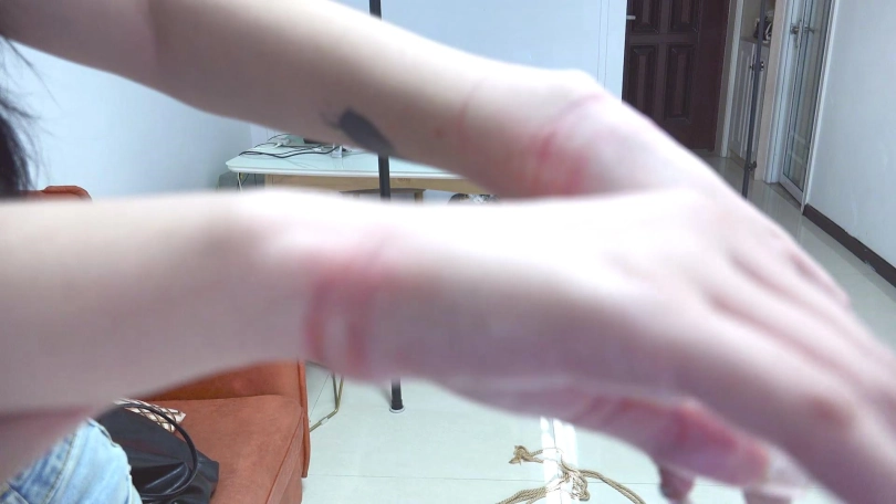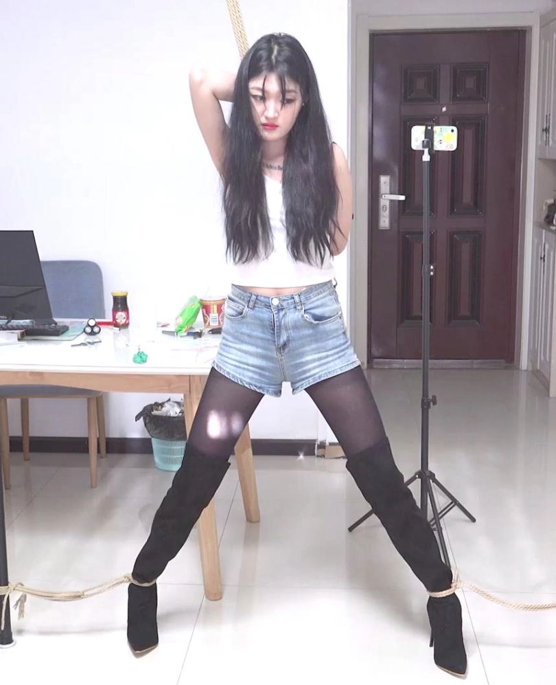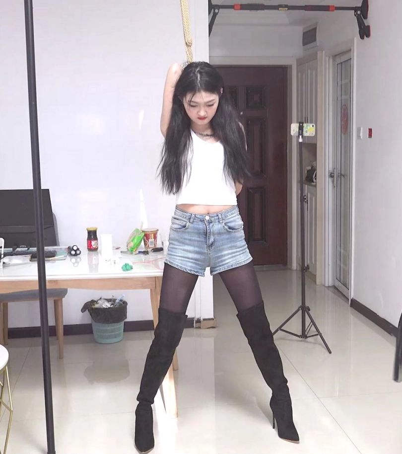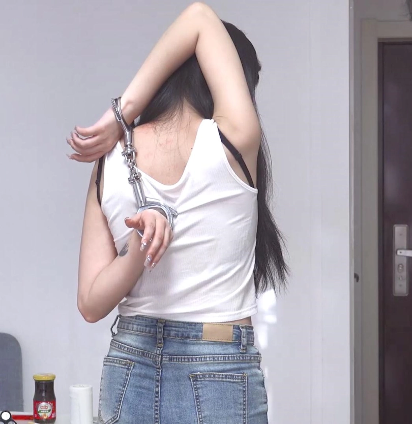 让金属的束缚感通过摄像机画面呈现出来,本人很喜欢那种金属紧到肉里的感觉,不管是苏秦铐还是背铐,片子里面都是特别紧的,能收紧的都是将铐环收到最紧,每个剧情就短短十几分钟惩罚禁锢,解开后都是深深的铐痕印子(如图,所有图片都是视频截图,没有后期制作),模特170cm,体重100斤,;禁锢道具用了板铐和筒铐,服装有黑丝和热裤以及12厘米长筒细跟靴子。