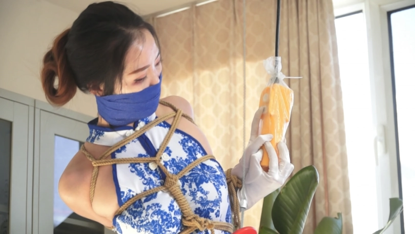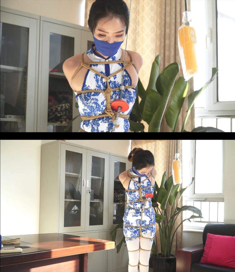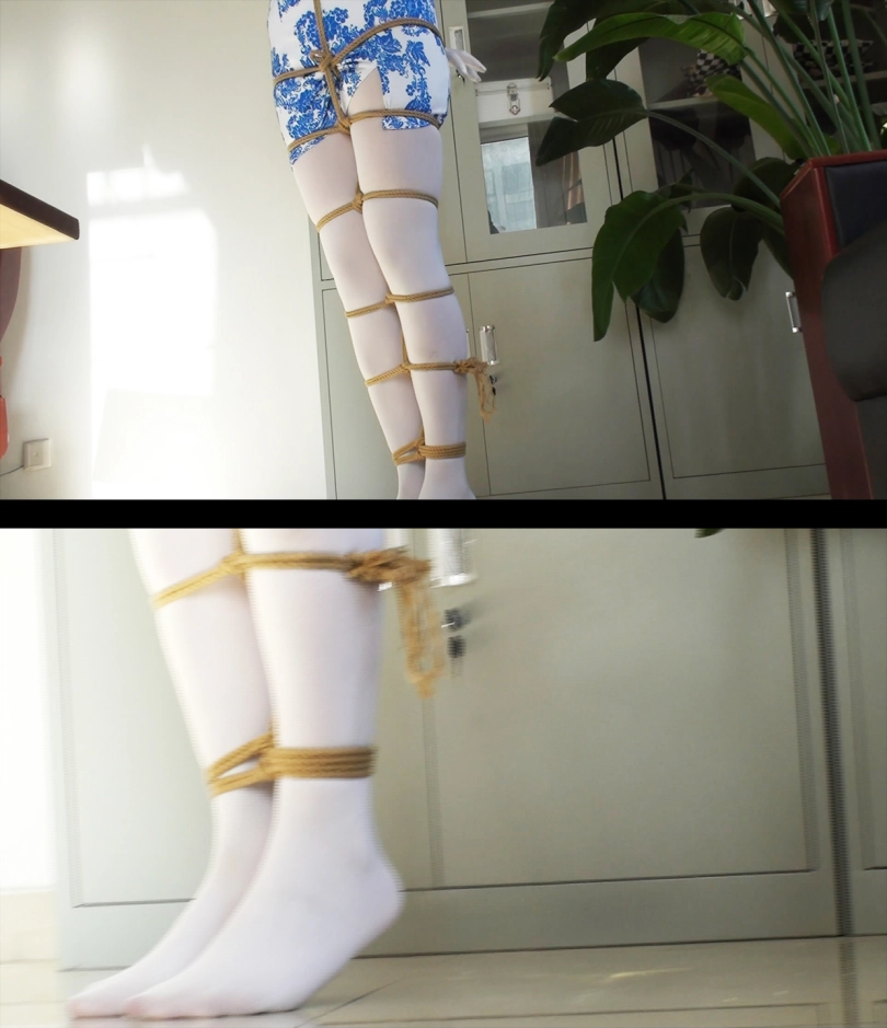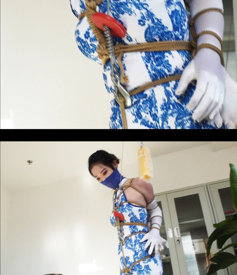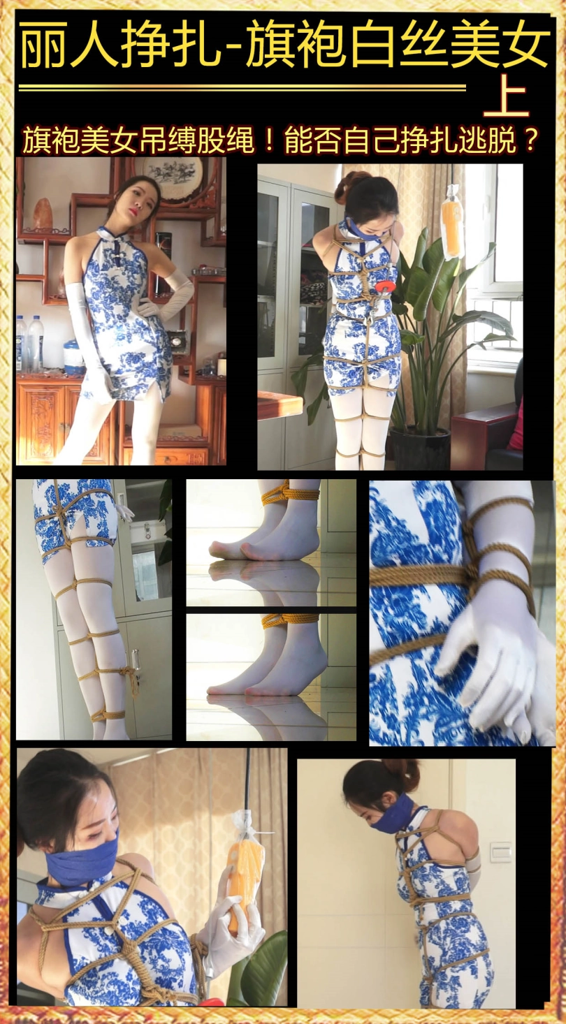 【逍遥】《丽人挣扎—白丝旗袍 上》白丝手套,丝袜旗袍美女,股绳吊缚,忍痛挣扎,白丝美脚痛苦蠕动~