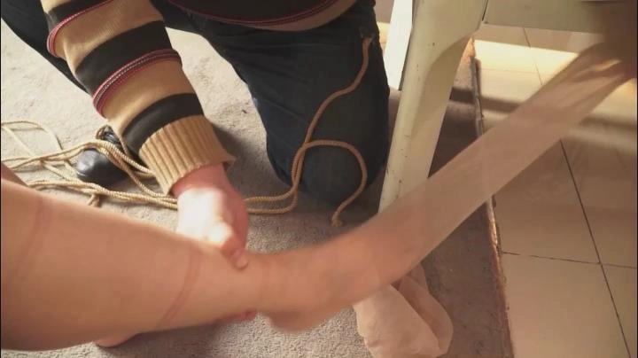 但令人没有想到的是,这一切都是大龙的调虎离山之计。在我离开之后,大龙闯入家中,发现在客厅被捆绑堵嘴的嫂子,开怀大笑。嫂子趁大龙抚摸她的丝袜美腿时,奋力一脚朝大龙头上踢去。大龙撞在桌子上晕倒了。嫂子就各种挣扎,想要磨开绳子逃脱。但无论怎样都无法挣脱束缚。忽然,嫂子看到桌上的电话,她想办法把电话弄到地上,然后用丝袜脚拨号求救。但这时大龙已经醒来,于是将电话拿走,并再度玩弄嫂子。嫂子几番挣扎未果,终于大龙拿掉塞在嫂子嘴里的丝袜。嫂子立马问大龙“你到底想要干什么?”,大龙笑着回复说“我要让你嫁给我!”……