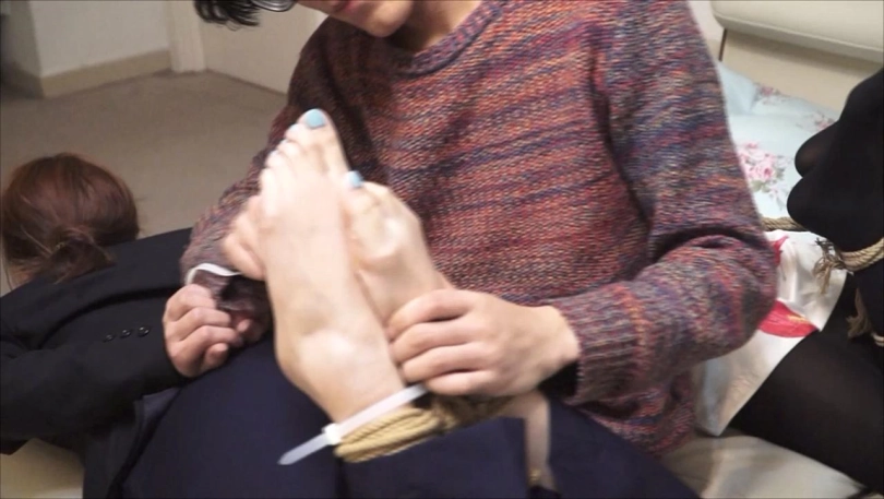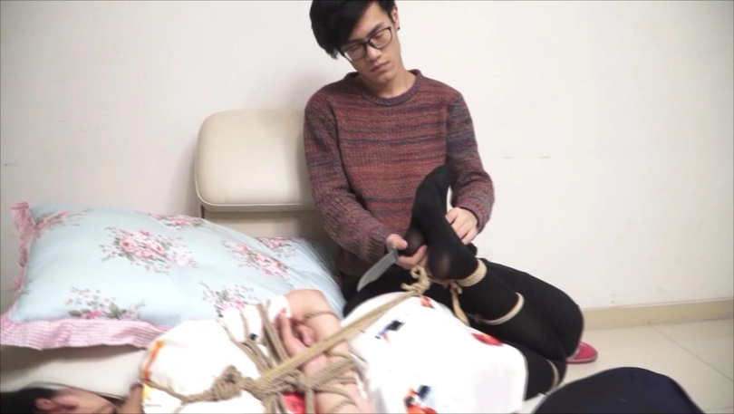 上集说到:欧阳玉虹(佟娅饰)与张倩倩(董倩饰)被王逸设计绑架,母女双双被绑在屋内。本集中王逸恶向胆边生,不仅大玩捆绑恋足,母女二人惨遭花式捆绑,更被强逼穿脱丝袜,玩弄裸足,最后还被丝袜堵嘴,全包装袋带走。欧阳玉虹的旗袍造型让人眼前一亮。劫匪王逸贪图享受的同时,在捆绑控制上却丝毫未有疏忽,细节做得非常出色。这就让母女的逃生之路显得希望渺茫。。。