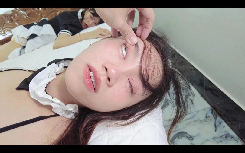 女仆装俩姐妹被反复弄晕后摆弄身体,涉及元素有裸足、昏迷、女仆装、翻眼皮等!