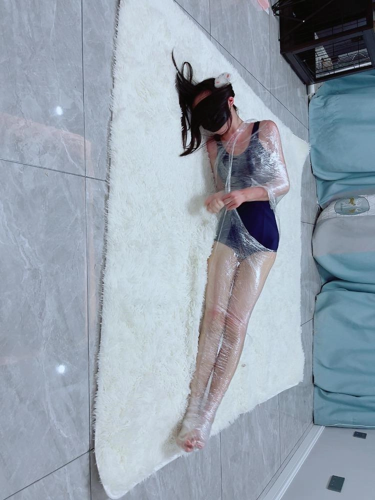 【咕咕精】【挣扎超多】茶茶保鲜膜全包脱缚挑战2-透明保鲜膜驷马全包-超紧!双马尾死库水小萝莉的绝望挣扎一次看过瘾