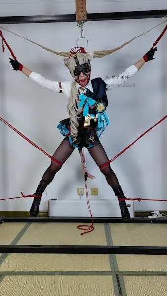 琳妮特小姐的上一场表演似乎没能成功呢,但是没有关系,前一场只是热身表演,接下来的第二场表演才是压轴好戏!接下来请欣赏,琳妮特小姐的完全悬空大字吊缚脱缚表演!我们的工作人员还会在中途随机使用道具进行干扰!至于琳妮特小姐能不能成功脱缚,敬请期待~