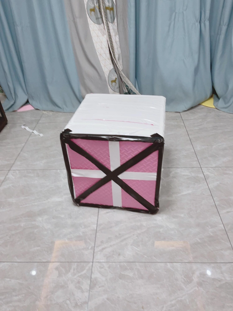 当然,牢固上也不能放过:在箱子内侧每条接缝处用布基胶带封好加固、然后在箱体外侧的4个面用布基胶带仔细包裹每一个角落,头顶的盖子在茶茶进入后用布基胶带多道加固,先X型贴胶带加固,然后横竖多道分别加固,保证牢固。