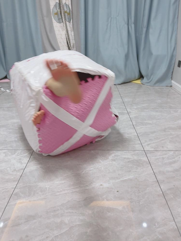 装箱脱出挑战又来啦!这次为了增加观赏性和互动性,选择了6块60厘米长的正方形软胶板,韧性更强,可以更直观的看出挣扎时凸出来的形状。