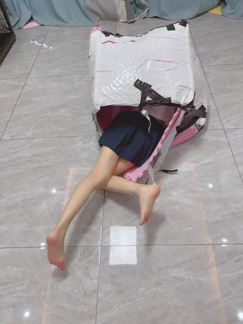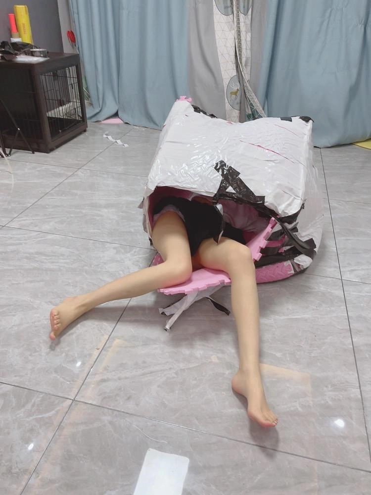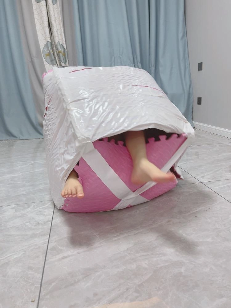 【咕咕精】036m³的装箱挣扎闷绝脱出挑战-丸吞play!胶带加固、剧烈挣扎、裸足脱出