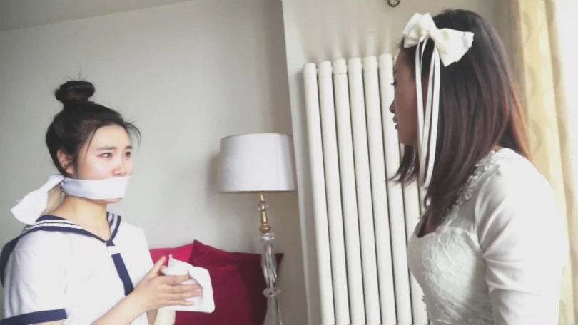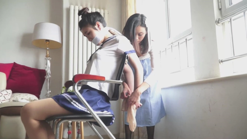 上集内容简介:某高中男老师张权,找借口来到美女教师文慧的家中,并伺机将文慧绑架监禁,拍摄各种耻辱照片。之后又利用这些照片数次要挟文慧老师,以各种服装姿势让其捆绑堵嘴。文慧不堪受辱,想逃离魔掌,答应张权找一个班上比自己更漂亮的女学生让张权捆绑。与张权达成协议后,文慧将班花施若约至自家,出其不意,将施若迷晕,并捆绑堵嘴。但就在文慧打算将施若交给张权时,内心的善良还是战胜了邪恶,她打算放了施若。可令她没有想到的是,在她给施若松绑之后,施若竟反将文慧捆绑堵嘴……(未完待续)