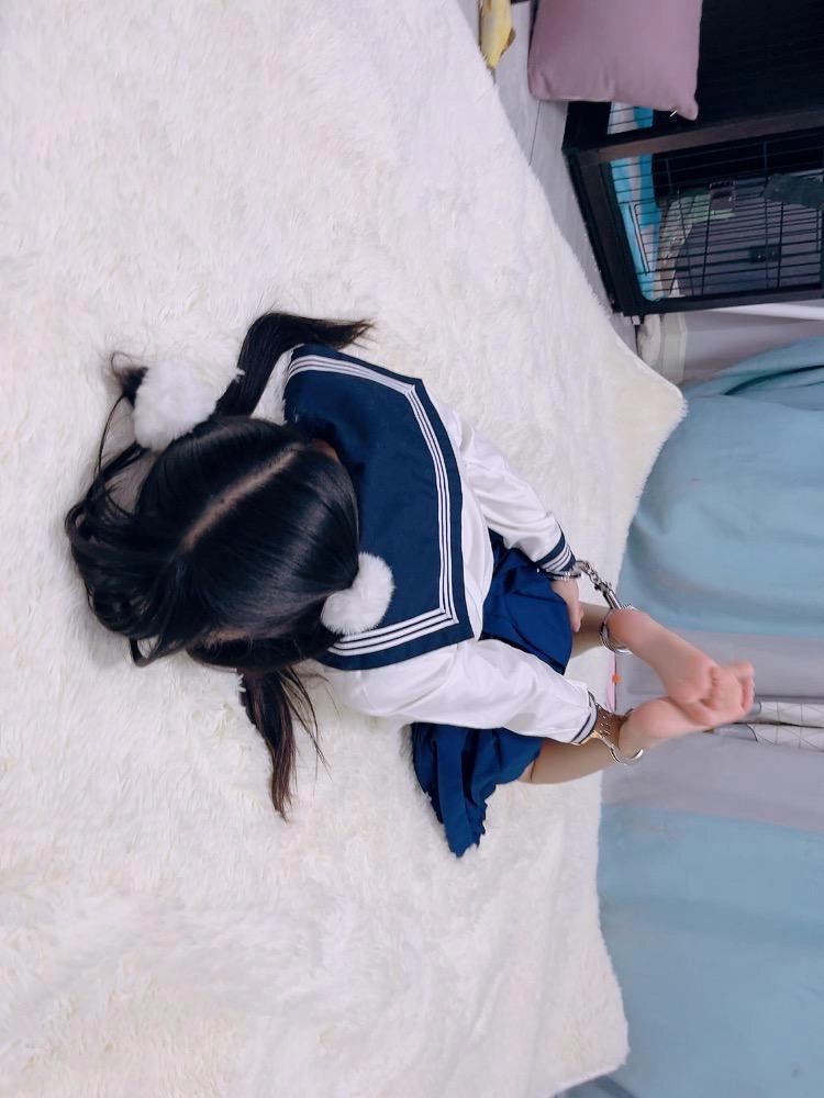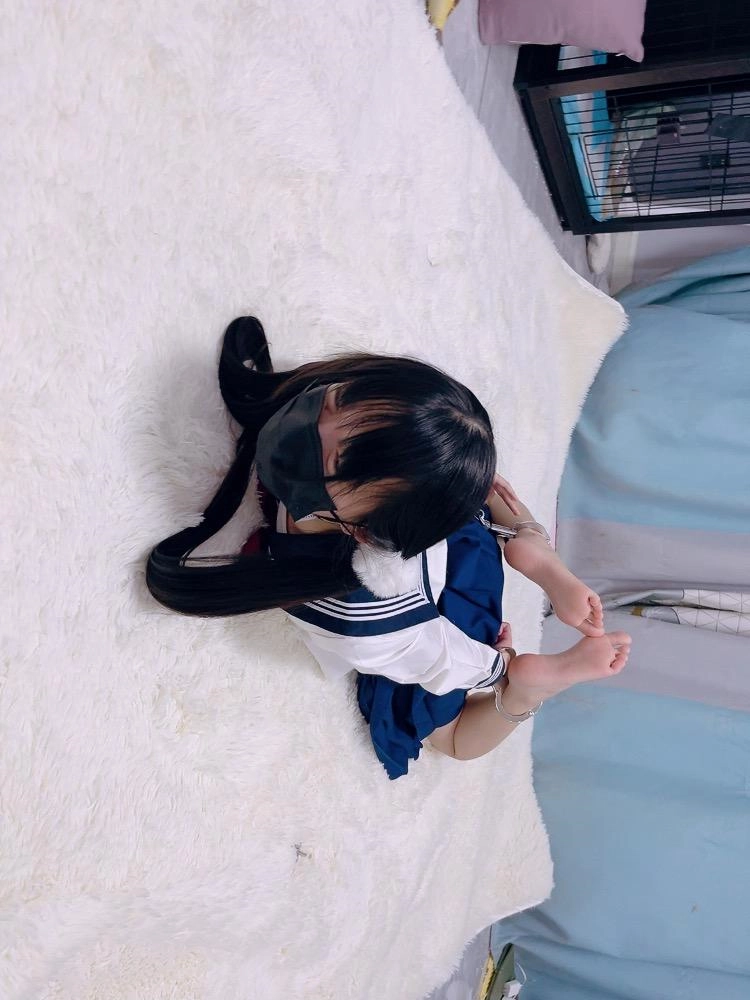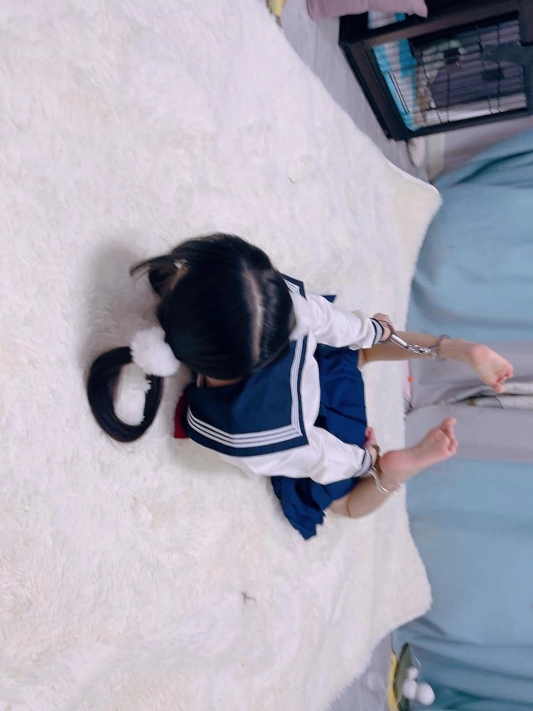 所以让茶茶驷马趴在地板上,用手铐把手腕和脚腕铐在一起呈驷马的姿势。左手铐左脚脚腕、右手铐右脚脚腕。然后调低机位,让大家第一视角欣赏茶茶的小脚~仿佛就蹲在被驷马的茶茶面前欣赏一样,大屏党有福啦~