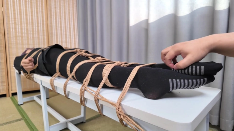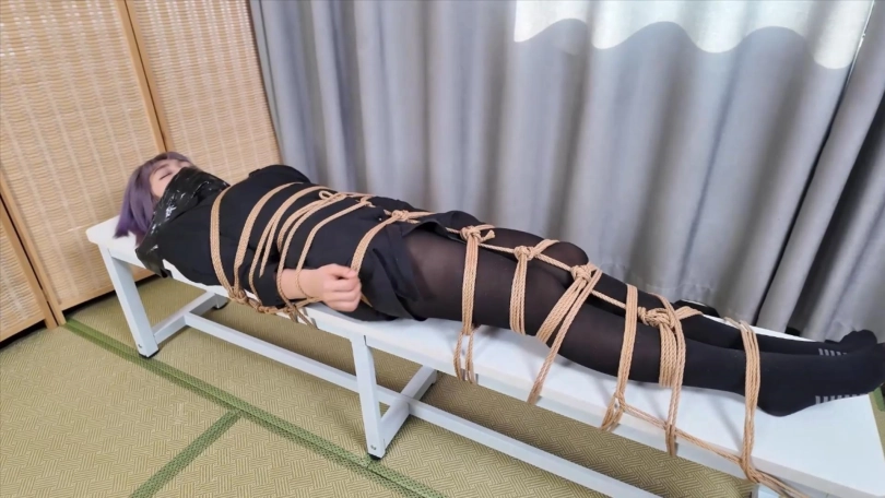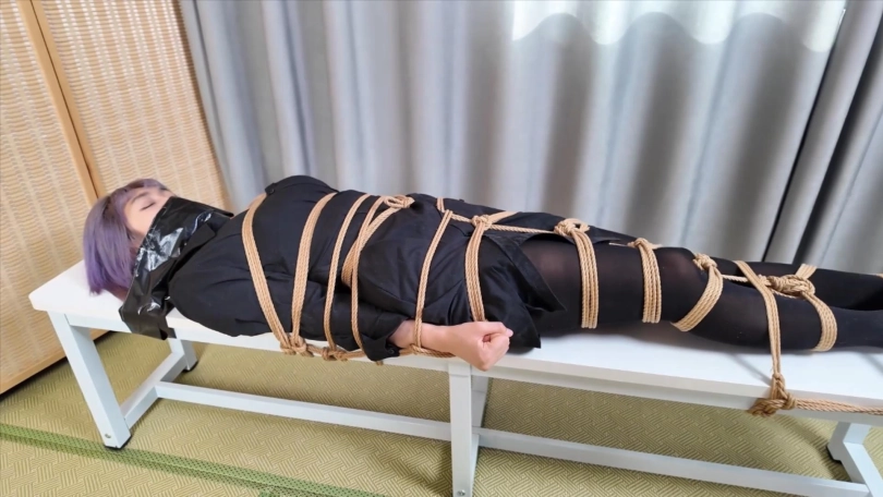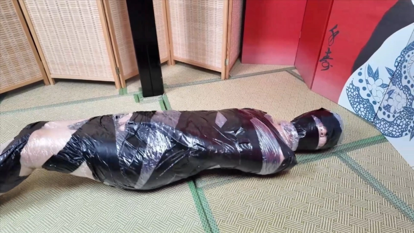 再用保鲜膜包住她的身体,外面用胶带缠绕,