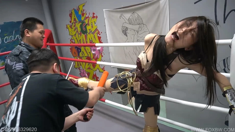 神奇女侠潜入一个地下拳台搜寻犯罪的证据,没想到自己却被两个留守的打手发现。手持凶器的暴徒打断了神奇女侠的双腿,又不停殴打她的小腹将她打到吐血昏迷。仍不罢休的暴徒将神奇女侠强行拉起来继续殴打她的下身,神奇女侠先是耻辱的失禁,最后被打的喷出血来,在一连串的虐待下最终昏死过去。