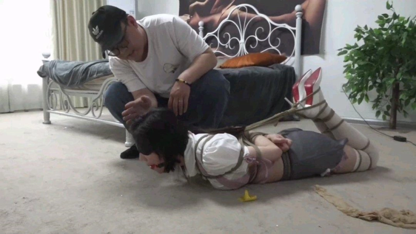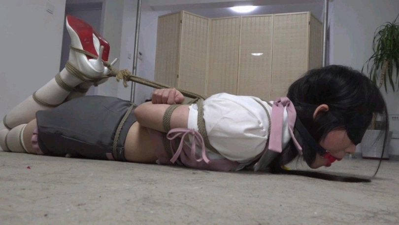 美女逃跑未遂,眼镜男将美女家教重新加固了一番,捆上驷马,将嘴上的胶带扯下,戴上口球,没一会的功夫,口水就留了一地,然而这还不够,他又取来一个眼罩。捆绑完后,便留下美女家教独自在房间里挣扎,自己说要去照顾一下她那男友,听到这句话,美女终于忍不住了,接着便发出强烈的呜呜声,像是对他这一行为的痛斥,然而一切都无动于衷,只能自己独自默默的挣扎……