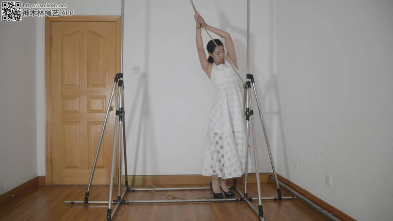 本次展示的是悬吊架模式,经计算和实际经验,本次的搭建方式是最为牢固和用材料较少的一种方式,模特好像对棒棒反应很大,呻吟不断———