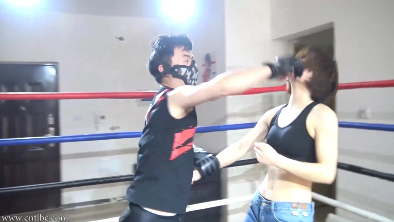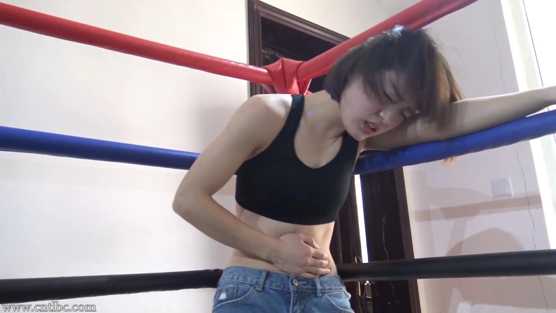 This is a customized video. The customizer likes Bing‘s figure and her performance of pain. So he asked her to wear a pair of low-waisted shorts. Without gloves, she can cover her belly better when her belly is punched. This video contains a lot of belly punches, belly kicks and spits. If you like this, don‘t hesitate, you will love this video!